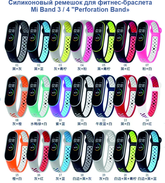 Силиконовый ремешок для фитнес-браслета Mi Band 3 / 4 "Perforation Band"